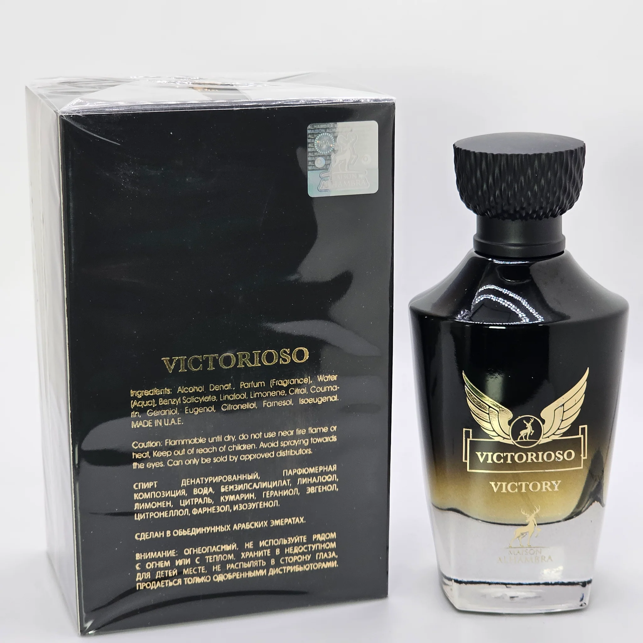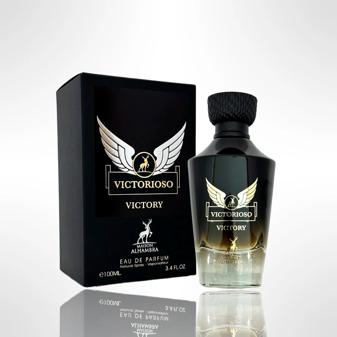 Victorioso Victory de Maison Alhambra est un parfum Boisé Aromatique pour homme. Victorioso Victory a été lancé en 2022. Les notes de tête sont Citron de Sicile et Poivre rose; les notes de coeur sont Résine oliban et Lavande; les notes de fond sont Fève de tonka et Ambre.